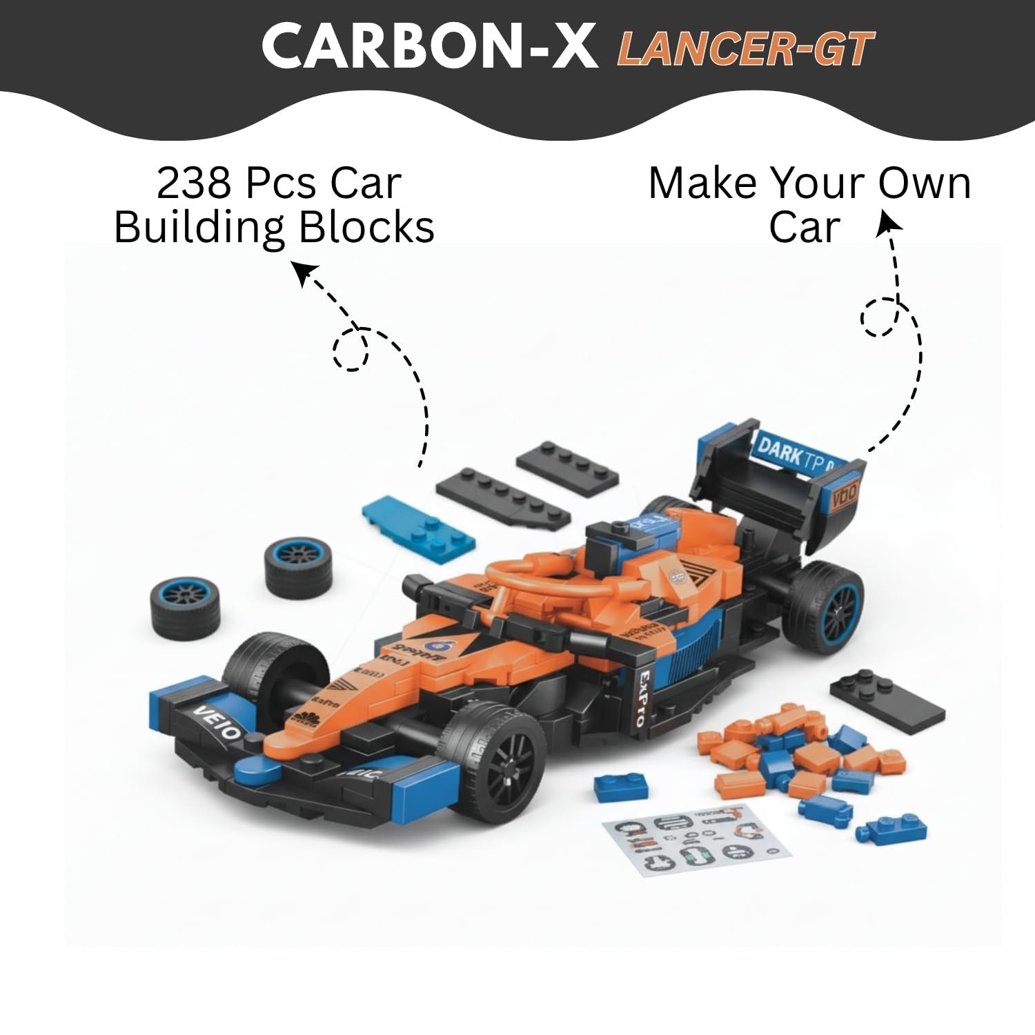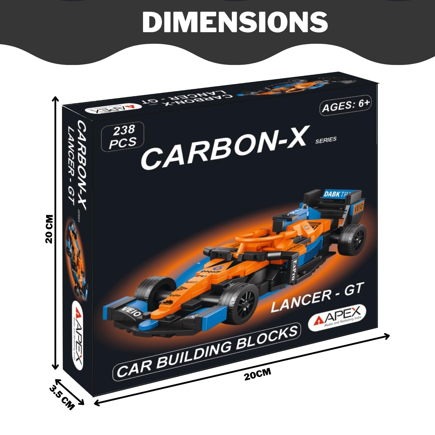 Unleash creativity and speed with the CARBON-X Lancer GT Car Building Blocks Set by Apex. Designed for kids aged 6 and above, this 238-piece construction toy lets children build their own high-speed Formula-style race car in vibrant orange and blue colours.