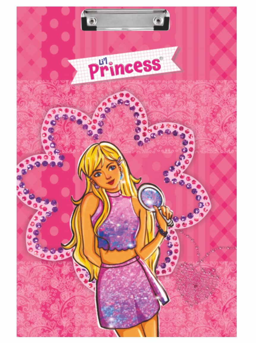 Lil Princess Pink Girls Clipboard Writing Board with Glitter Fashion Doll Design Cute Study Pad Holder for School Drawing Homework and Office Use