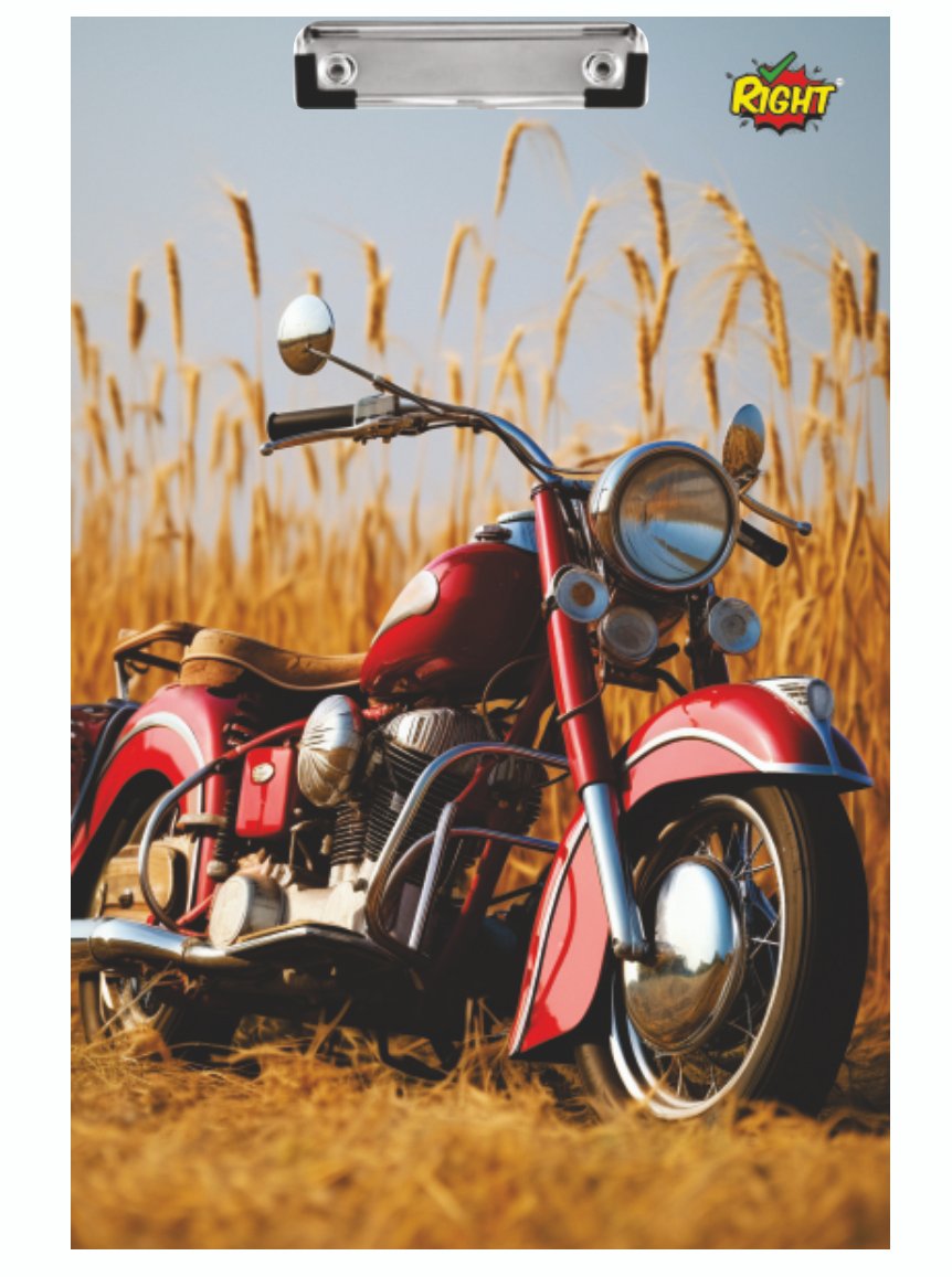 Vintage Red Motorcycle Kids Clipboard Writing Board with Classic Bike Design – Durable Study Pad Holder for School, Office, Drawing and Homework Use